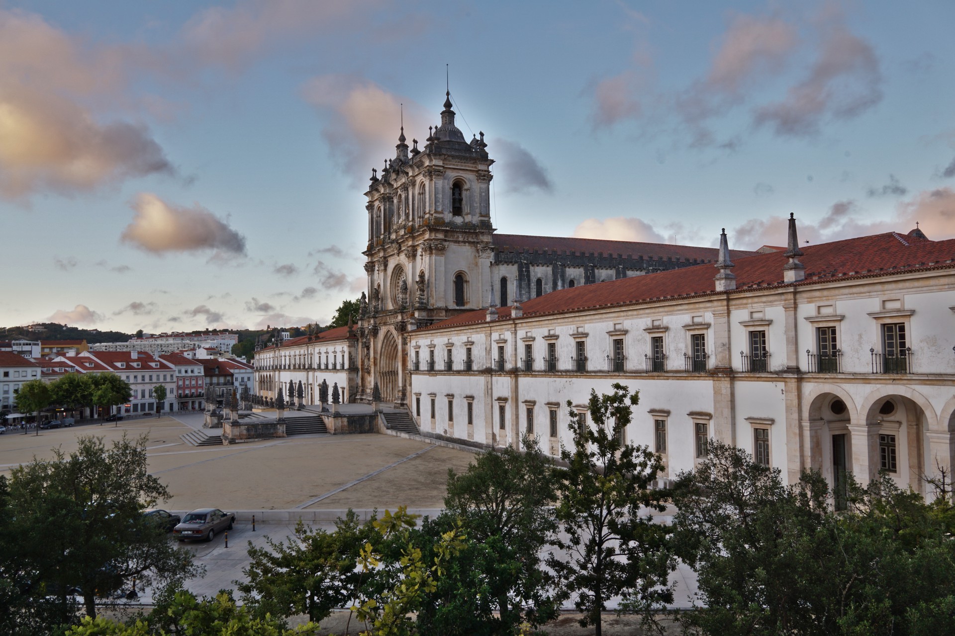 Alcobaca abends fotografiert vom Stativ mit einer Sekunde Verschlusszeit