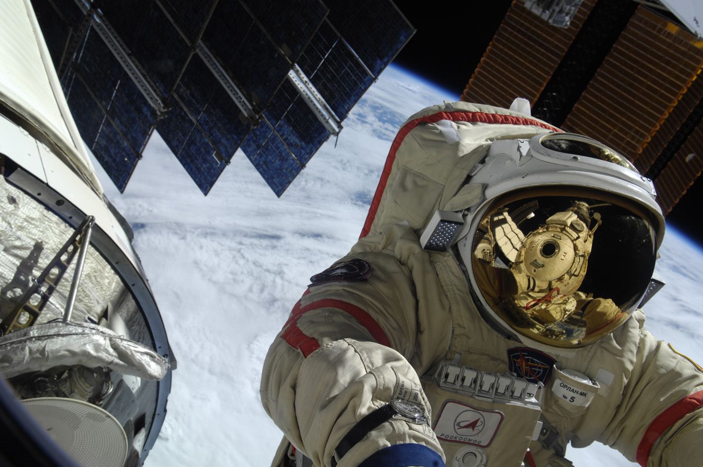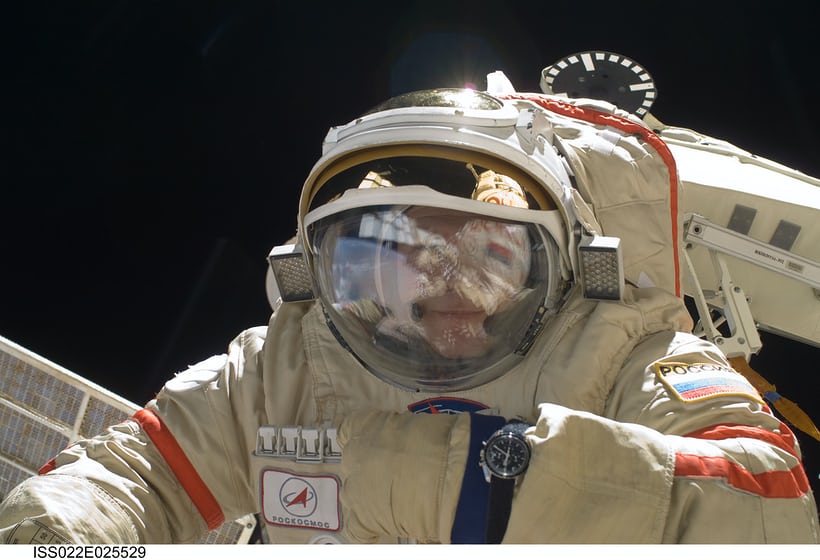 Die Speedy bei einem Aussenbordeinsatz der russischen Raumfahrtbehörde auf der ISS im Jahr 2010.